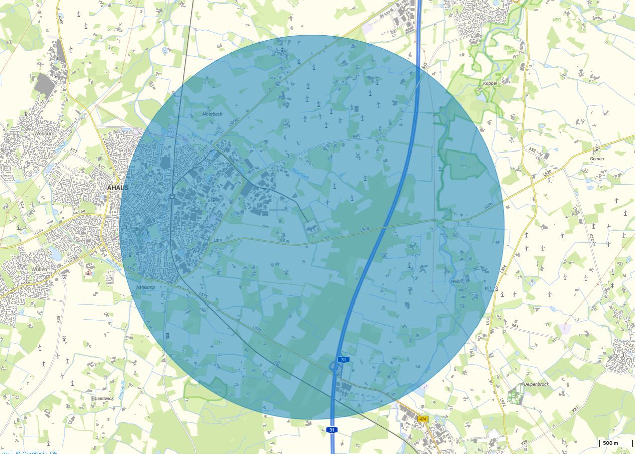 Zwischen dem 20. März 2026 13:28 Uhr (MEZ) bis zum 28. März 2026 00:00 Uhr (MEZ) ist der Drohnenbetrieb wegen eines polizeilichen Einsatzes bei Ahaus eingeschränkt. In diesem Gebiet gelten die Vorgaben für geografische Gebiete gemäß § 21h Absatz 3 Nummer 11 Luftverkehrs-Ordnung.